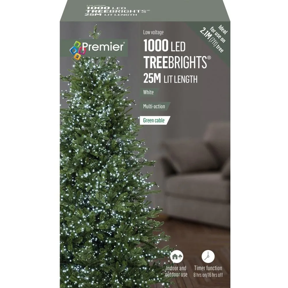 The premier 1000 led multi-action treebrights - white are super bright energy-efficient led lights that can be used indoors and outdoors. They come with 5m of cable before the first bulb and 25m of lights.