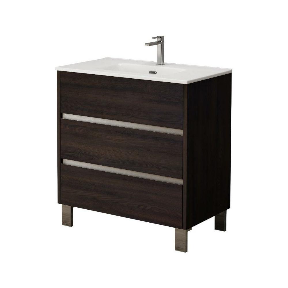Harvey 80cm 3 Drawer Floor Standing Vanity Unit - Wenge offers a sophisticated storage solution with straight, modern styling. Crafted in Spain, this unit features a dark wenge finish and three drawers equipped with a smooth Hettich sliding system. Soft-close drawers and an integrated organiser come as standard, ensuring a quiet and tidy bathroom environment. Please note this unit is supplied without a basin.