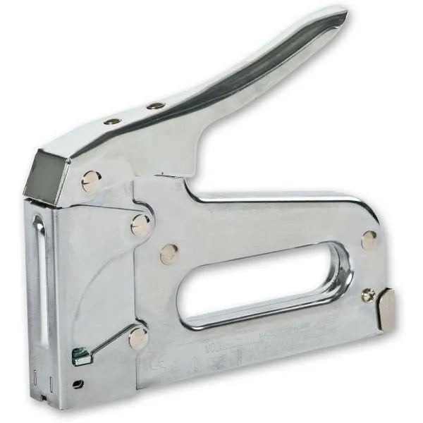 The Arrow T5 professional heavy-duty tacker gun has an all steel construction with hardened steel working parts and jam resistant mechanism and a durable chrome finish. It has an easy squeeze double leverage operation and a visual staple refill window and over 5 years of tested durability.