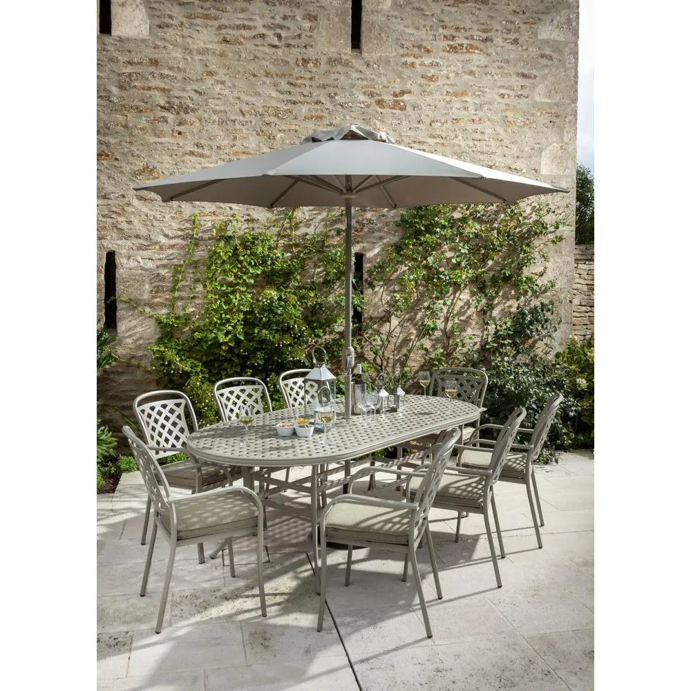 The hartman berkeley 8 seater cast aluminium oval set is perfect for alfresco dining. Crafted from cast aluminium and with the smooth contemporary lattice of the berkeley range, this furniture is durable, attractive and has great strength and value at its heart.