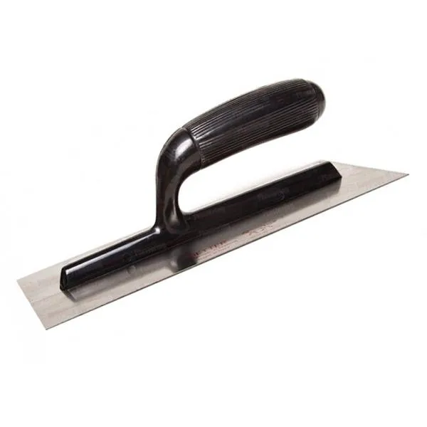 11? Plastering trowel, professional quality cement finishing trowel with a heavy gauge steel blade riveted to a strong aluminium mounting with comfortable plastic handle.