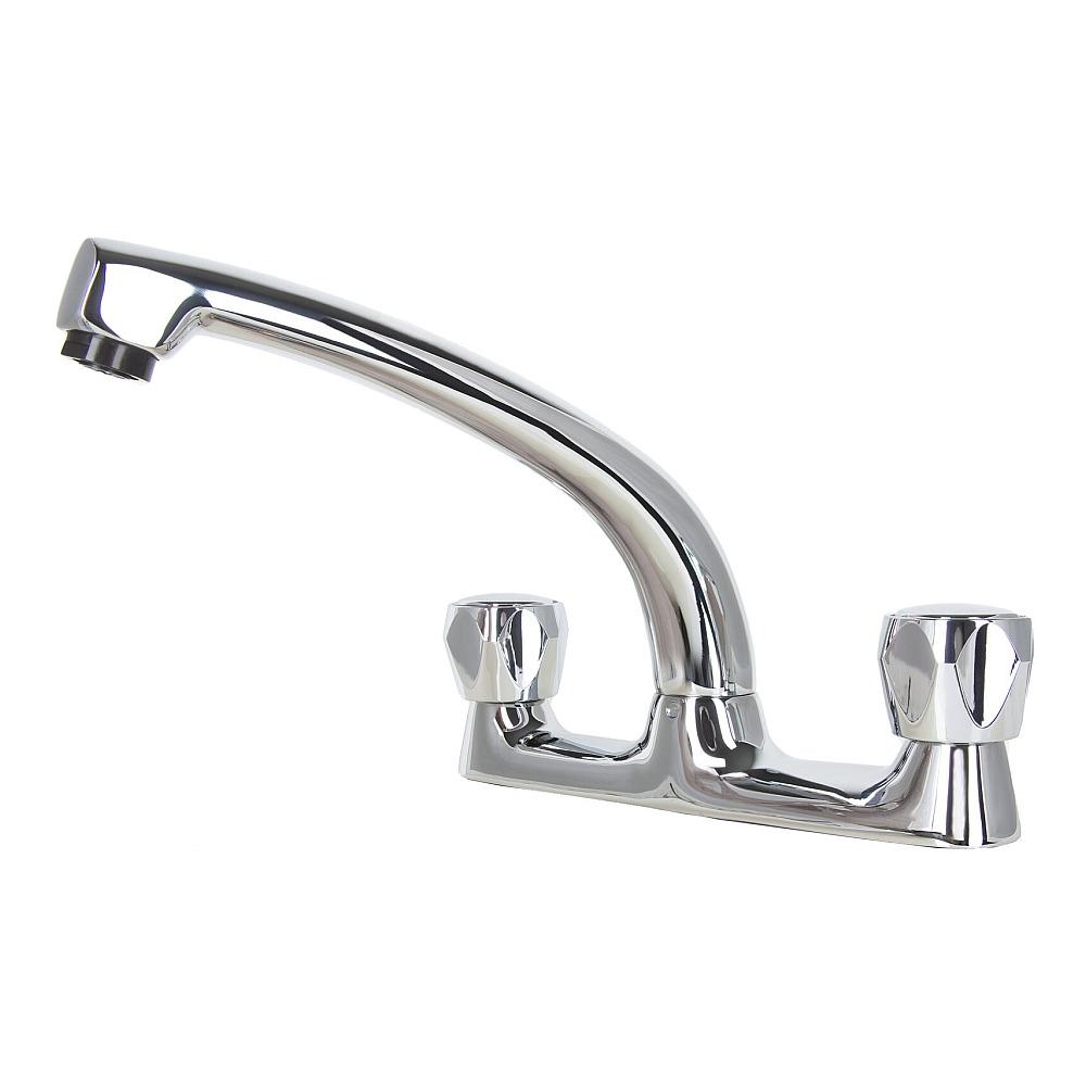 - A classic chrome dual-flow sink mixer designed for easy installation and durability.