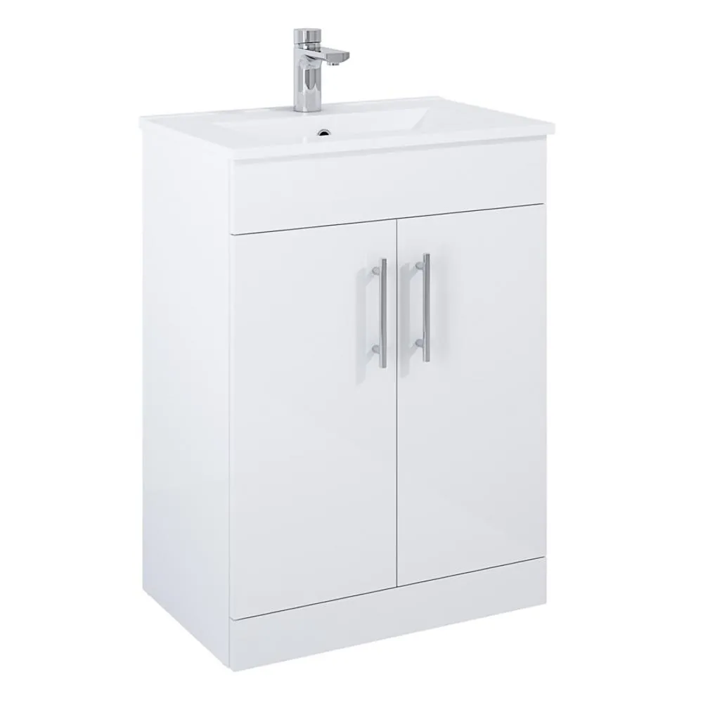 Floor Standing Vanity Unit & Washbasin White - 60cm