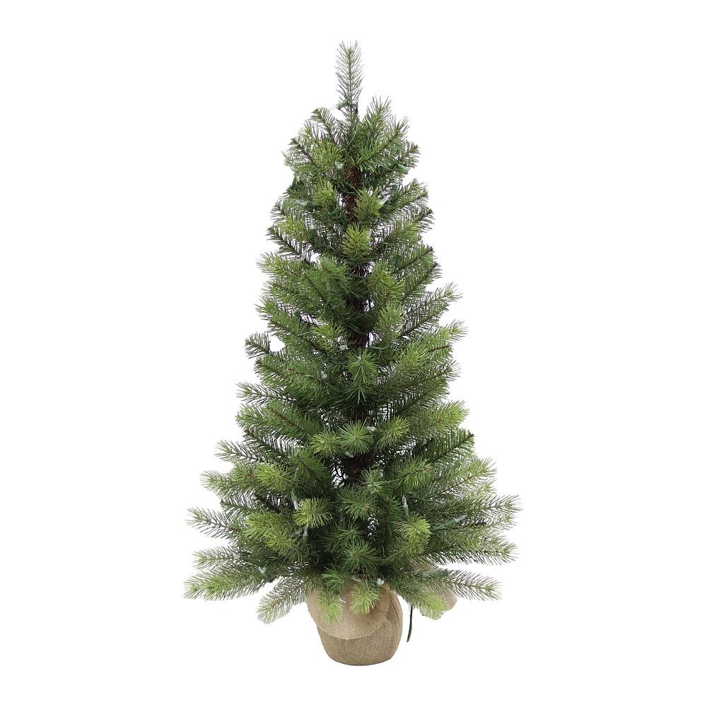 - A 3ft mini realistic fir tree with 158 tips and a rustic burlap base.