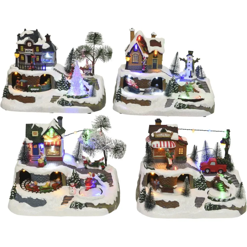 Led Musical Winter Village Scene 4 Assorted - 17cm