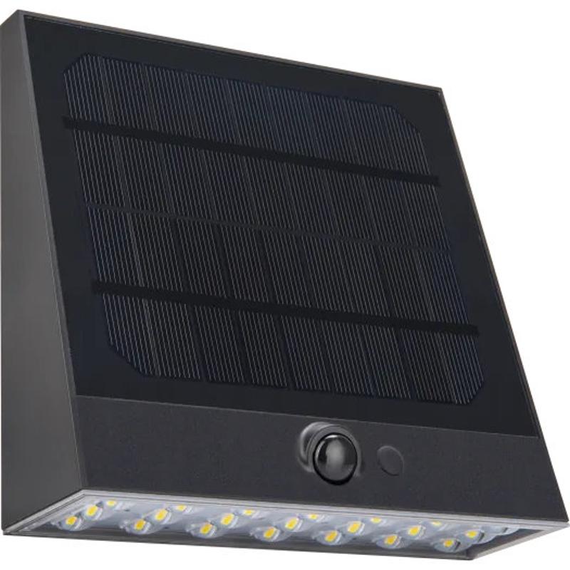 Luceco Stealth Solar Wall Wash Light 7W 1000lm 3000k IP54 PIR - Black