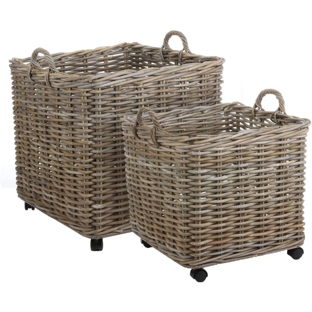 The marcia set of 2 square baskets are crafted from high quality rattan and are sturdy enough for holding larger loads. They are ideal as general purpose baskets for use around the home and are fitted with wheels for easy movement when full of heavier items such as logs.