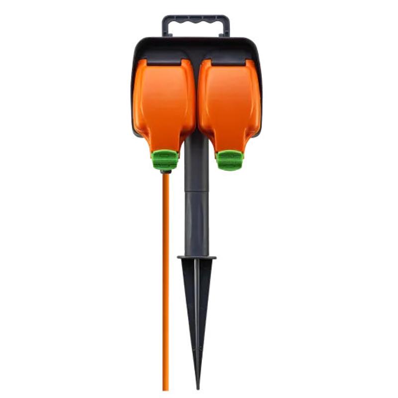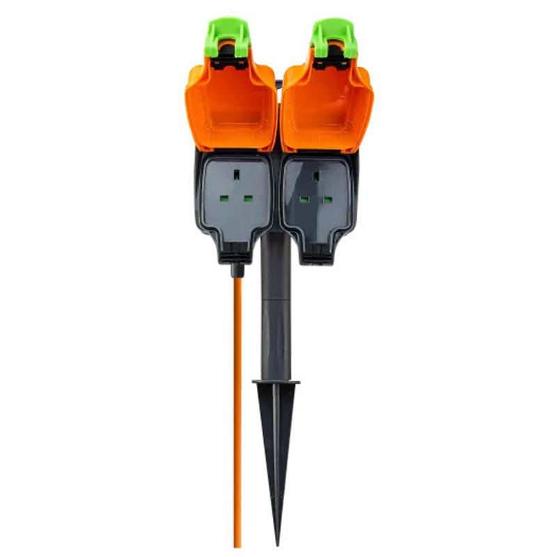 The Masterplug garden spike is fitted with two weatherproof sockets and has a 15m extension lead. It is Convenient & safe in providing temporary outdoor power sockets ideal for use with DIY tools or garden equipment. It provides instant garden power and has a spike for securely fixing the sockets into the ground. It is IP54 rated in use with latching waterproof socket covers and is Manufactured to BS1363/2 for peace of mind.