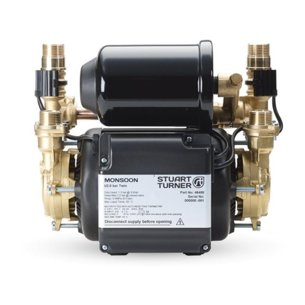 Monsoon Universal U2.0 Bar Twin Pump 46480 is a premium quality Matt Black brass pump designed for vented systems. It boosts both hot and cold water supplies equally and is supplied with anti-vibration flexible hoses for quiet operation.
