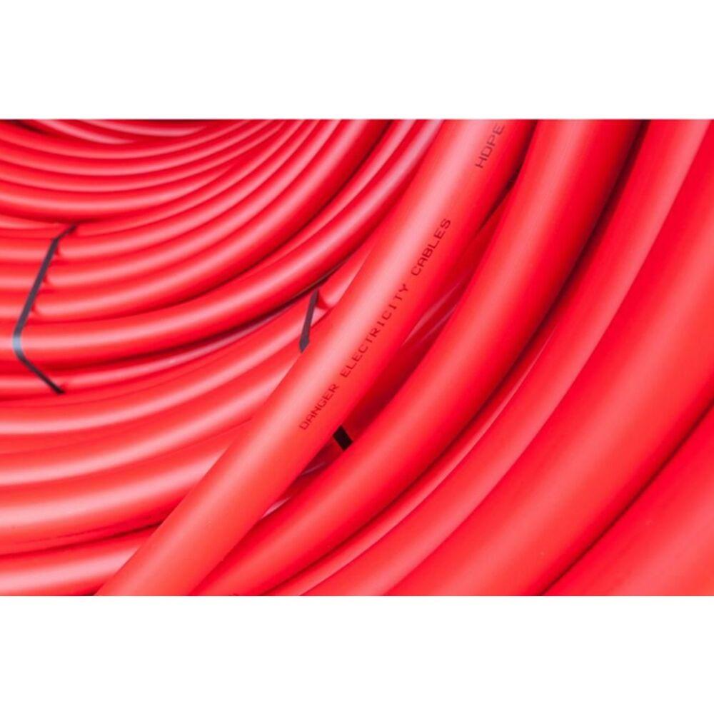- A 50m coil of red HDPE ESB ducting designed for electrical cable protection.