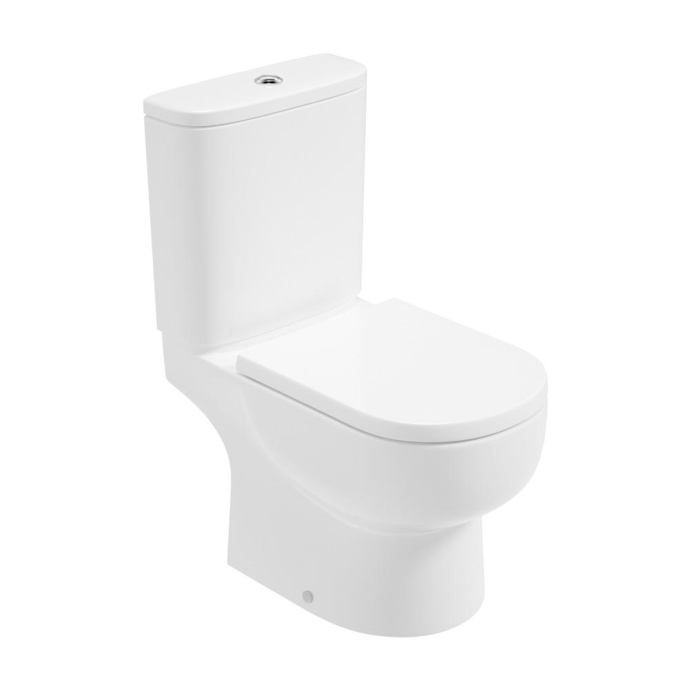 - A stylish open-back close-coupled toilet with a quick-release soft-close seat.