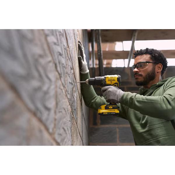 The 18V STANLEY® FATMAX® V20 Cordless Brushless Hammer Drill with 1 x 2.0Ah Lithium Ion Battery and Kit Box features new and improved battery technology, with no memory effect and minimal self-discharge, coupled with brushless motor technology, for improved power efficiency and run time.